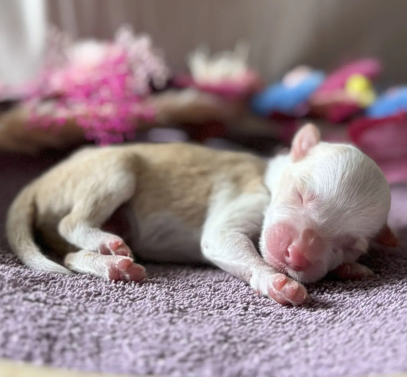 Très affectueuse, Miss Rose aime dormir lovée contre mes jambes ou blottie contre ses frères et sœurs 🤍. Elle n’est pas friande de bagarres mais sait s’imposer quand cela devient nécessaire. Avec son tempérament sensible et observateur, elle est la promesse d’une chienne proche de l’humain, tendre et profondément attachante.