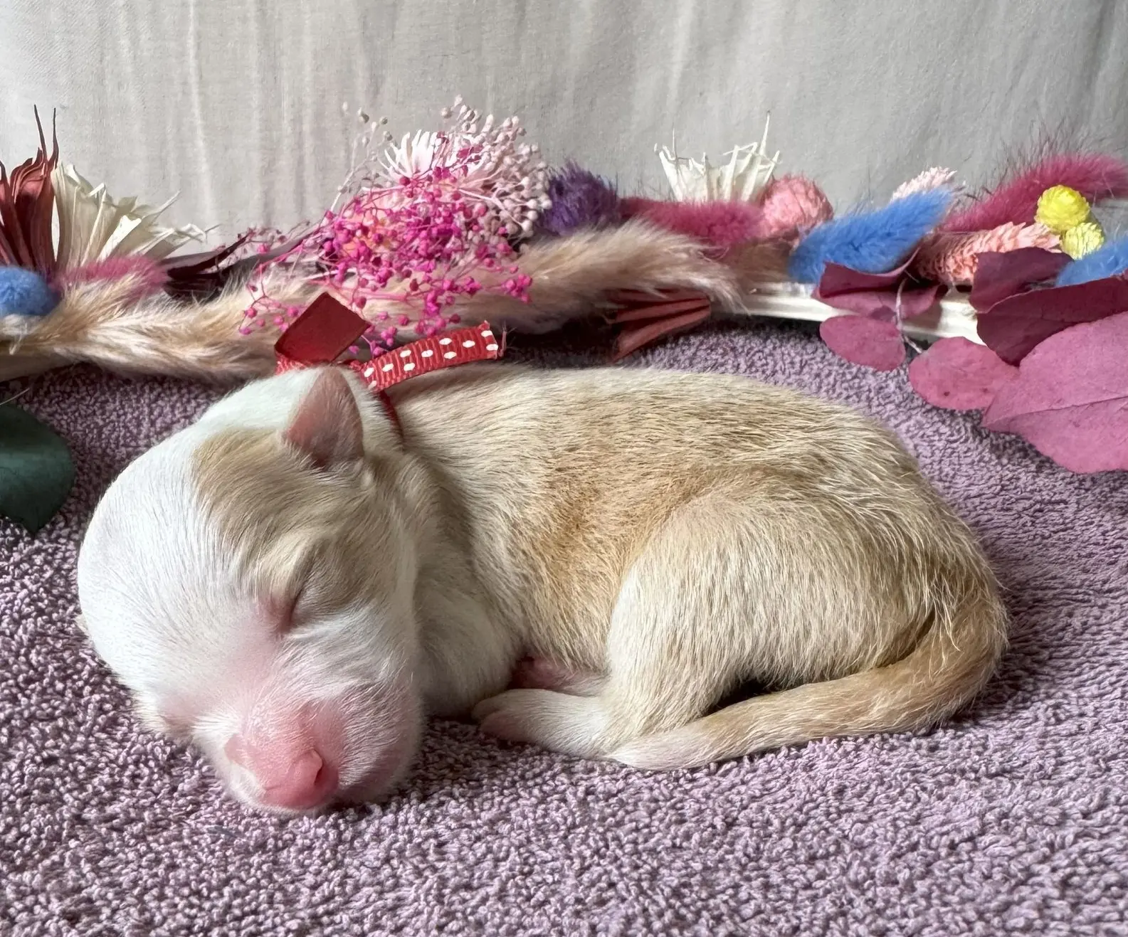 Cinquième à montrer le bout de sa truffe, Monsieur Rouge est arrivé avec 195g d’énergie bien dosée. Une petite saucisse tout en longueur, toujours prêt à gambader dès qu’il est réveillé, et souvent le plus rapide à la mamelle – la motivation, c’est sacré !